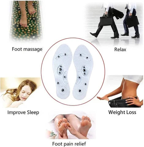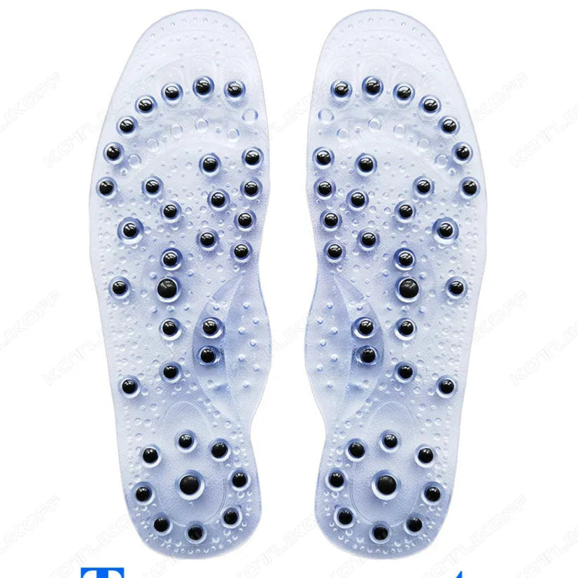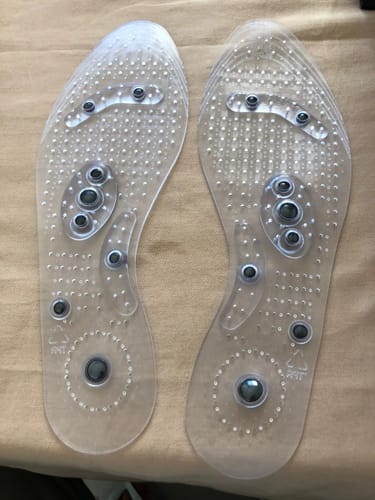 Onze inlegzolen combineren acupressuur en magneettherapie. De verhoogde acupressuurpunten stimuleren de drukpunten op je voeten om pijn te verlichten, terwijl de ingebouwde magneten de bloedsomloop stimuleren en zwelling op natuurlijke wijze verminderen, zodat je vrij kunt lopen.